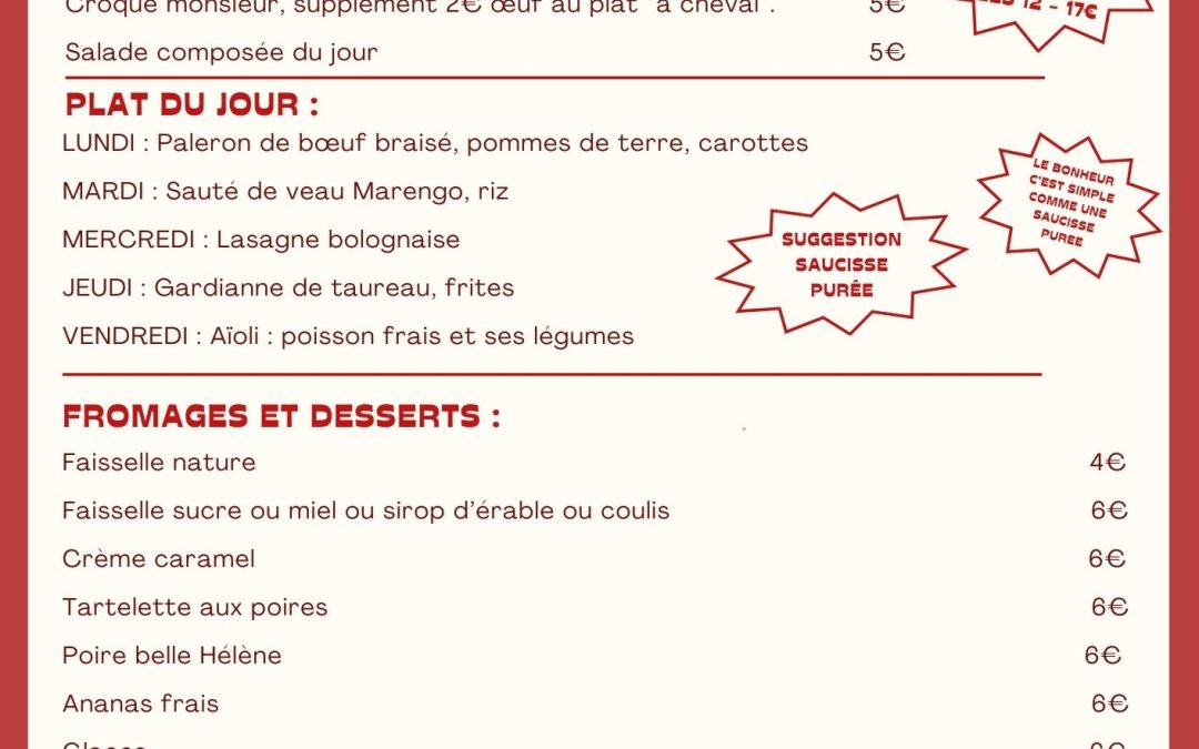 MENU DU 29 SEPTEMBRE AU 4 OCTOBRE