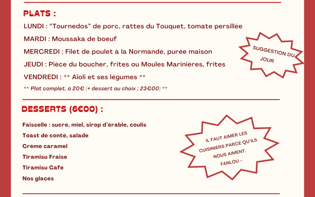 Menu du 23 au 27 mars 2026